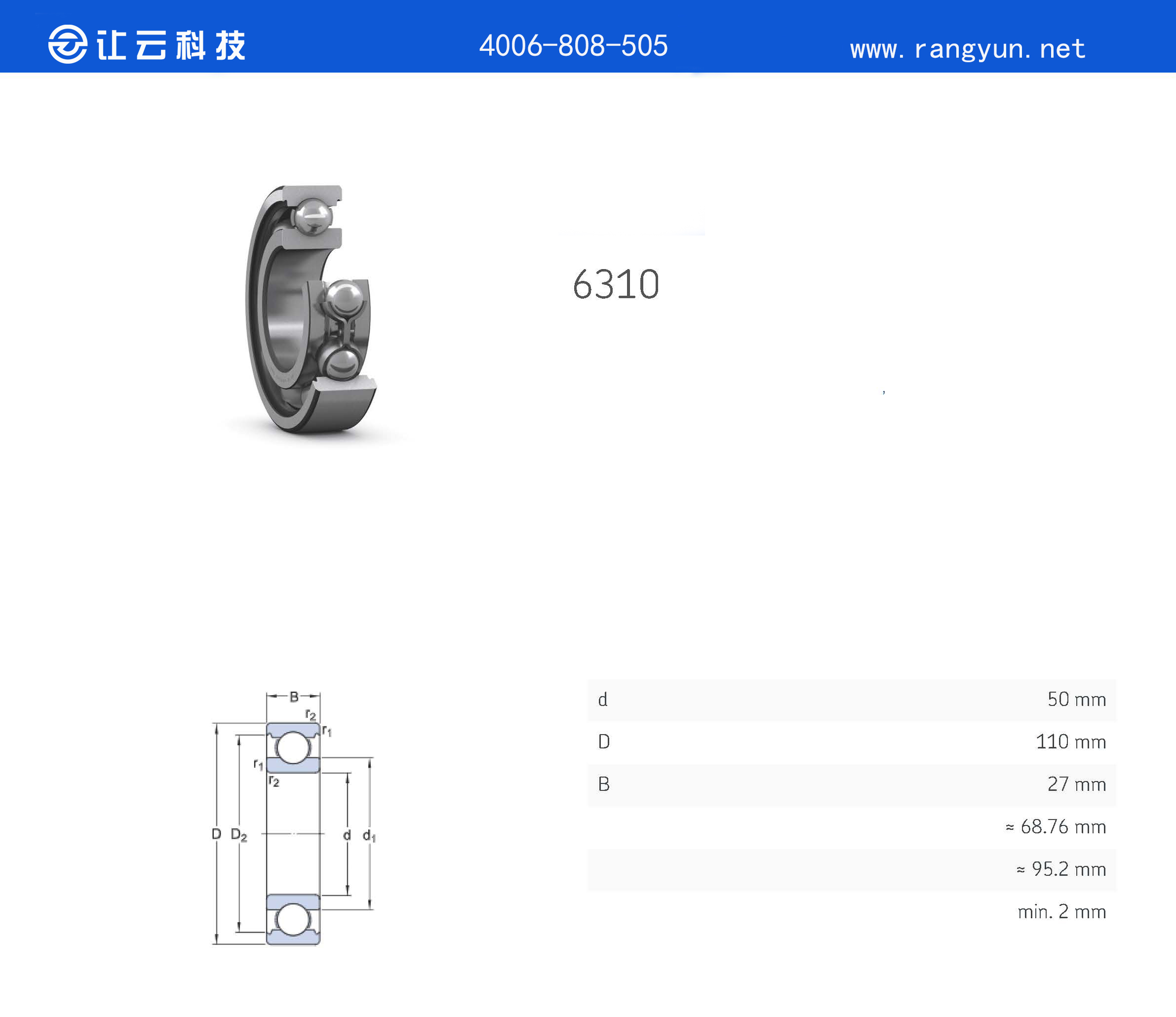 | 高温轴承型号 | 6310 | ||||